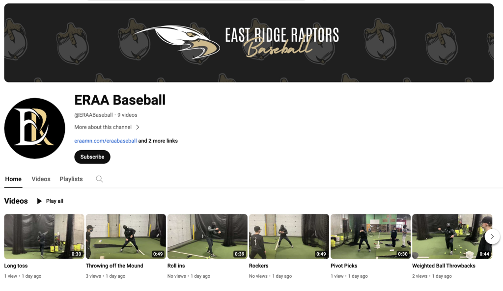 ERAA Baseball has recently launched a YouTube Channel where we will be able to post videos related to training, coaching, team celebrations, and more!